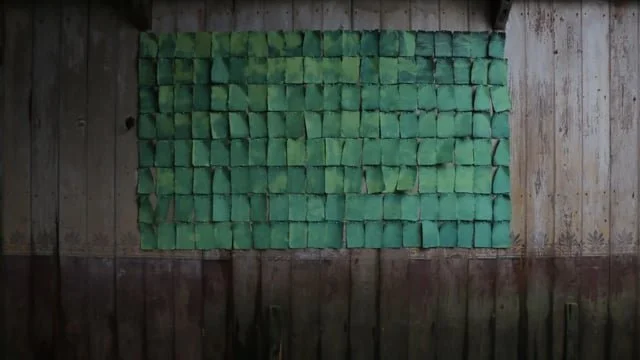 160 sheets of mulberry paper were handmade and coated in UV-sensitive light chemicals and installed on the windowless wall of a derelict shooting hut on the Northumberland moors to mark the shortest day of 2016 on the Winter Solstice. The print installation was documented in a time-lapse video between sunrise to sunset in The Last Light (2m 24s), which was projected through a glass-less window frame during Blue Hours/an exhibition in four parts in 2017.